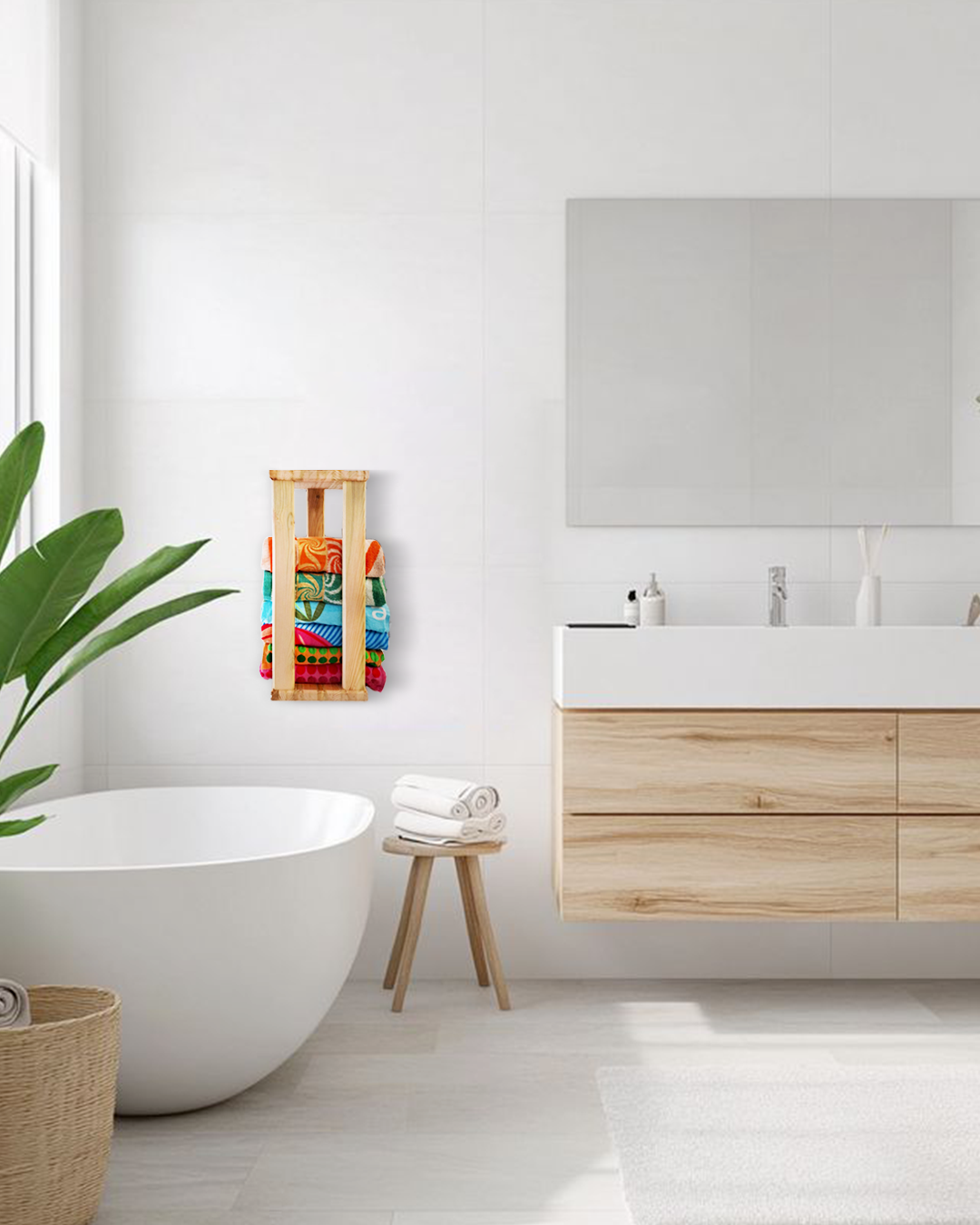 Ce porte-serviette est fabriqué en pin traité, un bois naturellement résistant, sélectionné pour sa durabilité et son esthétique chaleureuse.